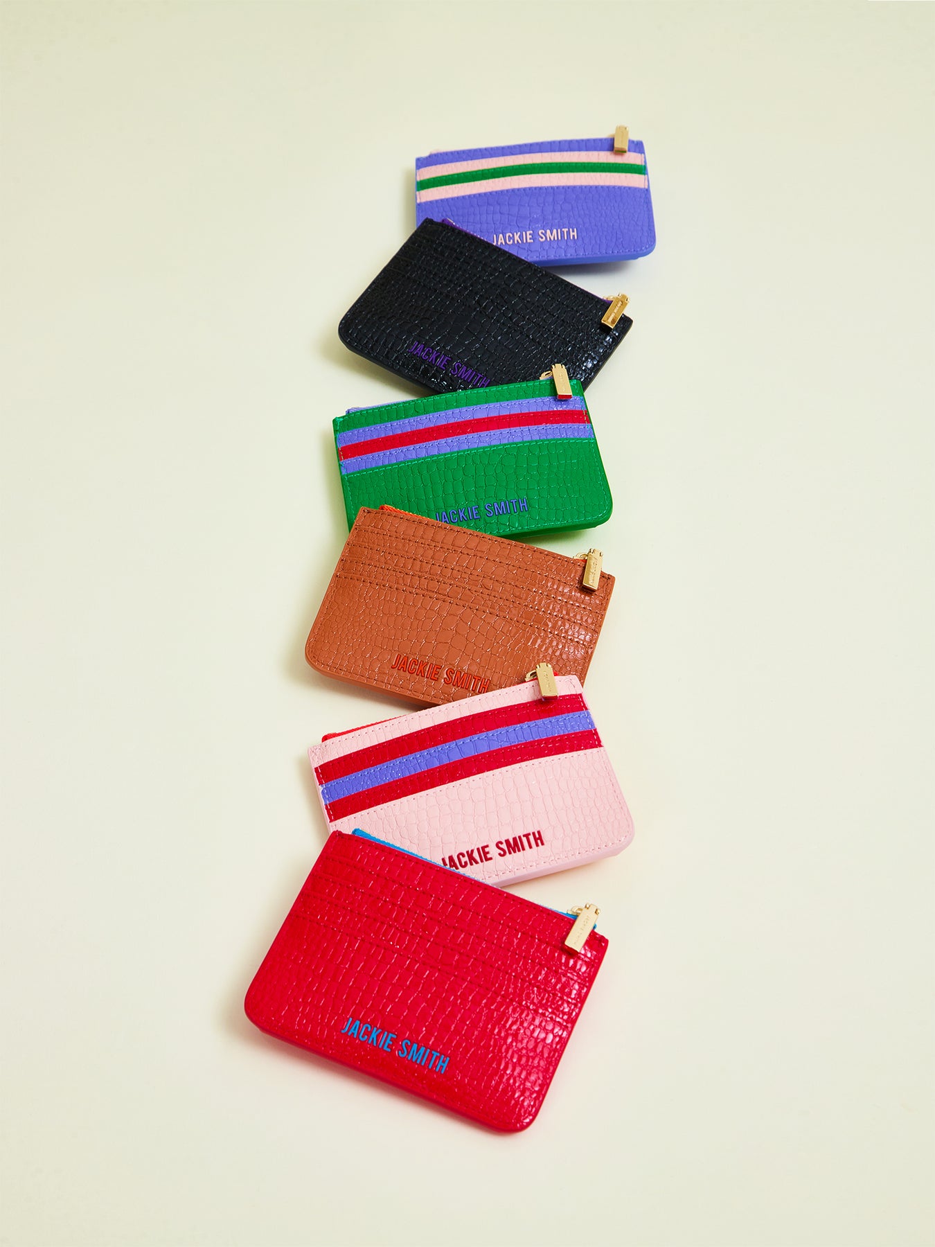 Un pequeño gesto de color y carácter. Confeccionado en PU glossy grabado con efecto crocco, este tarjetero combina textura y brillo en una silueta precisa y funcional. Su interior, forrado en gabardina rayada en inspiradoras combinaciones de color, revela una organización impecable: compartimientos para doce tarjetas y un bolsillo superior con cierre a contratono que añade un guiño sutil de diseño. Los herrajes bañados en oro completan una pieza que equilibra practicidad, detalle y una elegancia contemporánea que no pasa inadvertida.