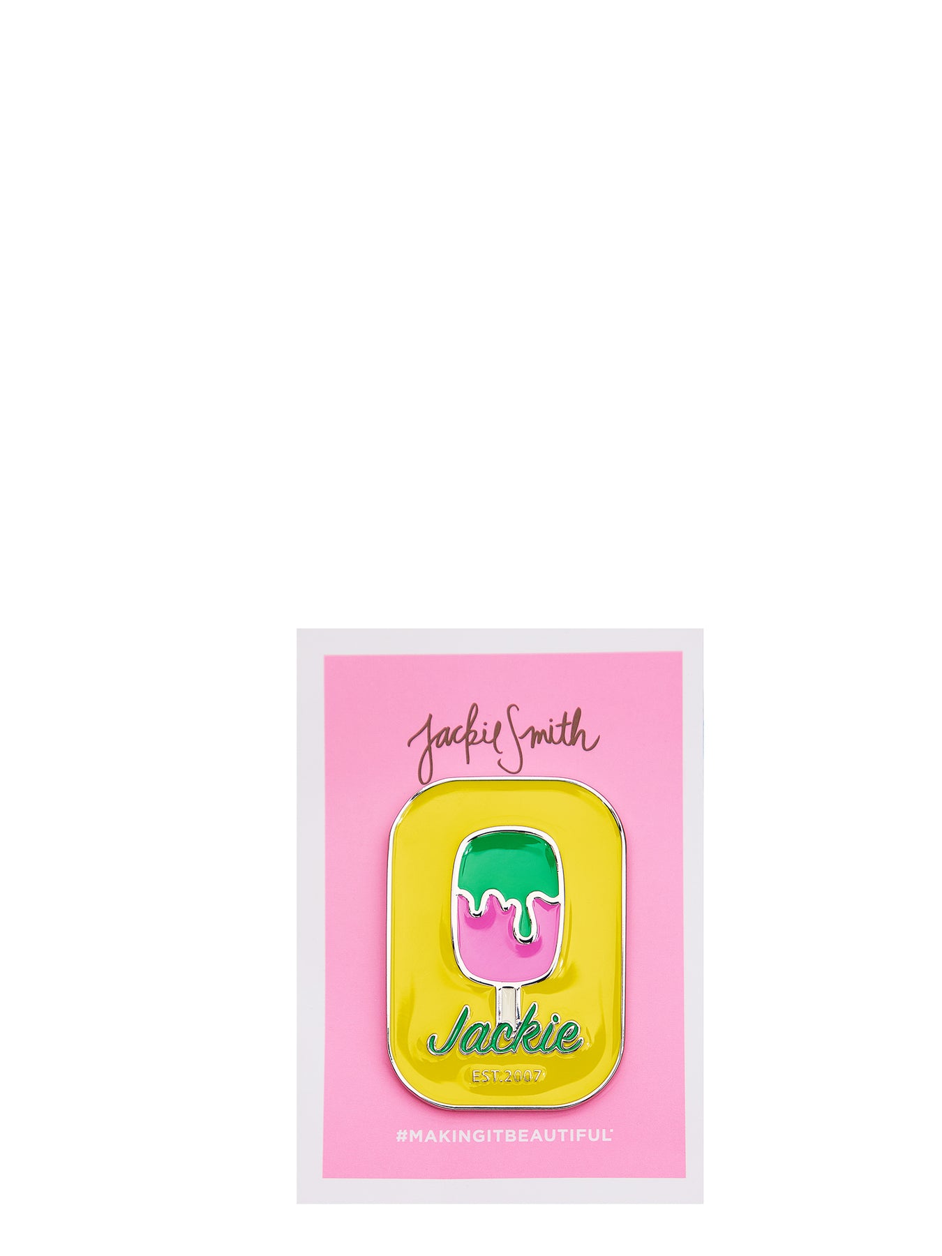 Esmaltados, coloridos, pequeños objetos de deseo para personalizar tus prendas o bolsos. Nuestros pins esmaltados forman parte del universo lúdico de Jackie. Fueron diseñados con dos cierres mariposa en la parte posterior que garantizan que sean fáciles de poner, sujetar y quitar. Todos juntos o por separado evocan una forma contemporánea de lujo: alegre, personal y exquisitamente cuidada.