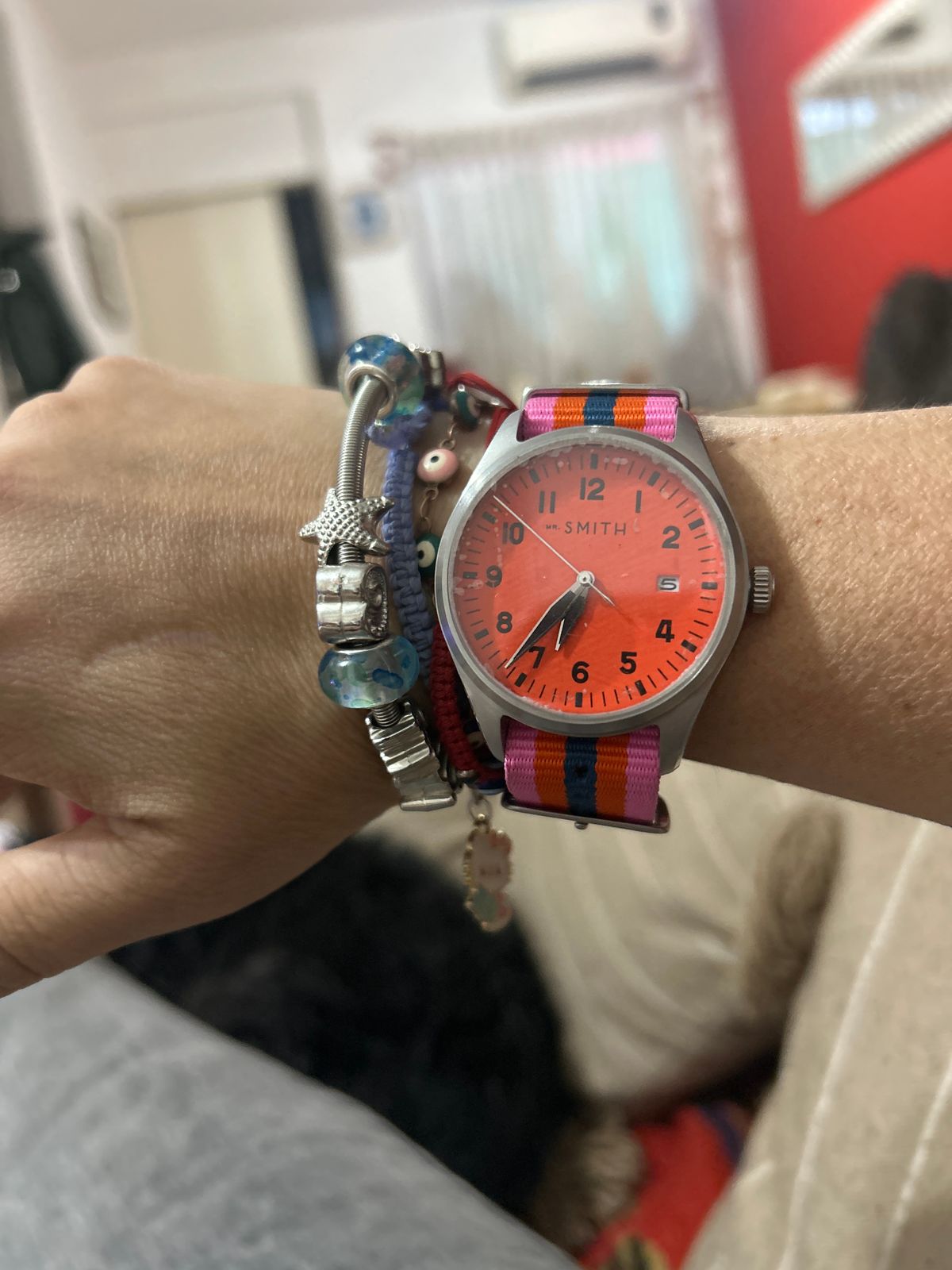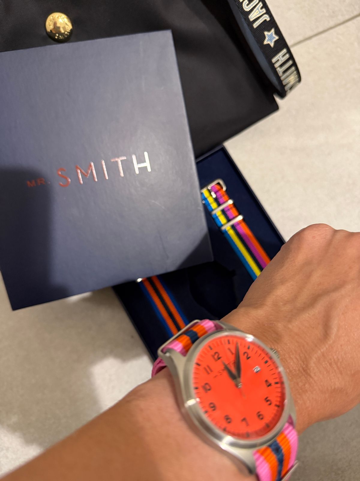 Hi Mr. Smith, just in time! Con su impronta chic, este reloj será tu compañía en aquellos momentos donde el tiempo sea pura felicidad. El dial algodon mate y agujas color navy le dan ese touch sofisticado, que luego los detalles luminosos realzarán. Sus 3 straps intercambiables te invitan a elegir el match ideal. Su packaging? Una delicada caja donde la ribbon es el comienzo de la experiencia. Tic tac… it’s now, we love this watch!