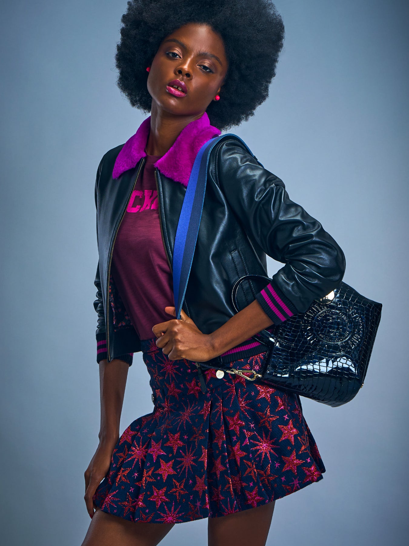 En el universo de Jackie Smith, Mini Flora es una pieza ágil y expresiva. Un diseño pensado para acompañar jornadas dinámicas con elegancia relajada y una dosis justa de personalidad. Esta edición limitada, manufacturada en un exclusivo cuero italiano grabado, revela un delicado contraste de texturas que aporta profundidad visual y un atractivo táctil inmediato. Su interior ofrece una cuidada atención al detalle y una organización pensada para acompañar el ritmo diario con naturalidad. Incorpora un bolsillo multifunción que permite llevar lo esencial con orden y discreción, mientras el cierre aporta seguridad sin alterar la fluidez de la silueta. Los herrajes bañados en oro suman un acento luminoso y refinado, y la strap de ribbon, regulable y removible, introduce un gesto gráfico sofisticado que permite llevar la pieza al hombro o cruzada, según la ocasión.