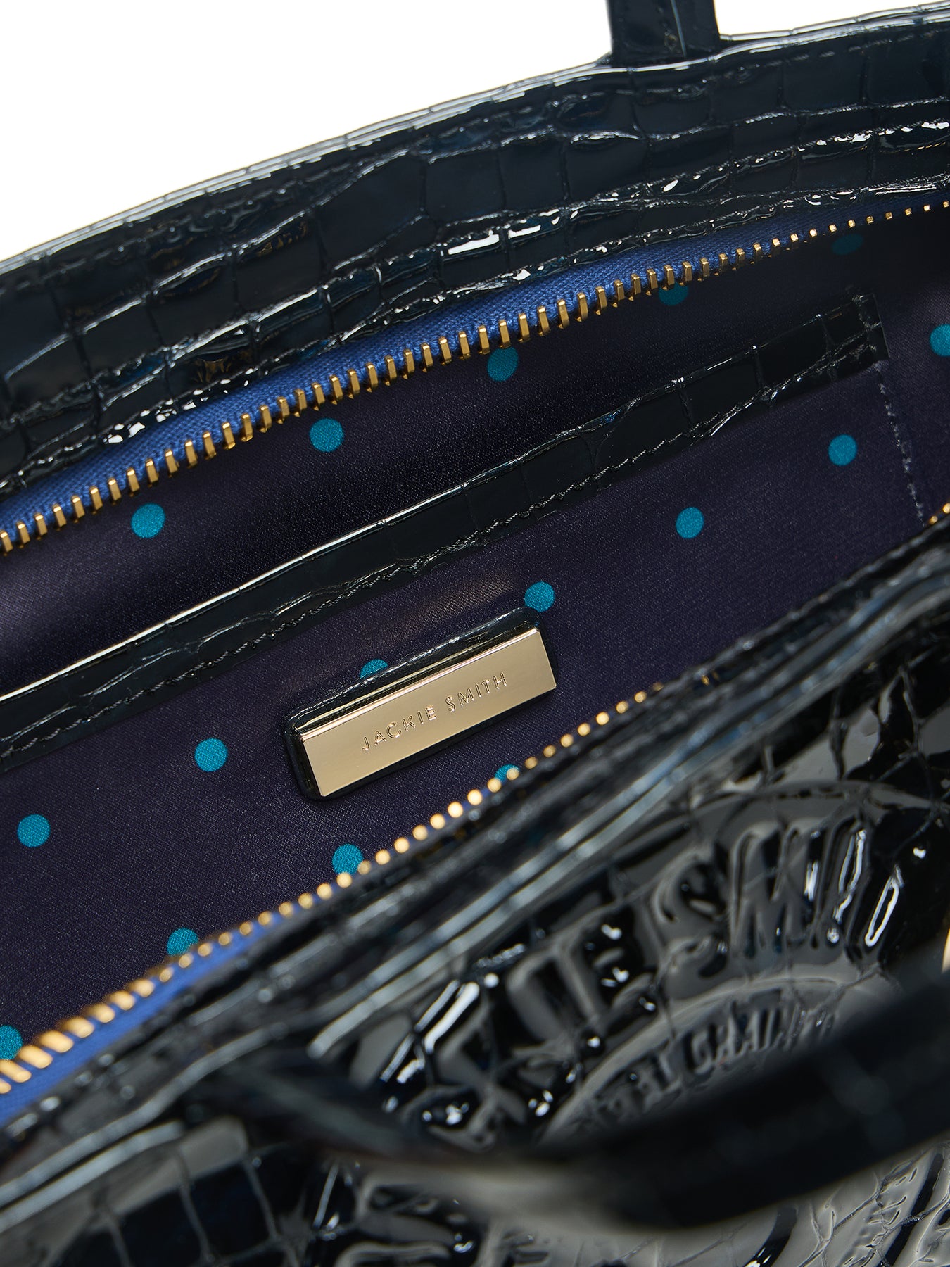 La textura del cuero grabado con efecto crocco cede y se define con el paso del tiempo: tenga en cuenta que puede haber algo de desgaste de la superficie de la base y de las manijas antes que otras áreas, debido a la delicada naturaleza del acabado.