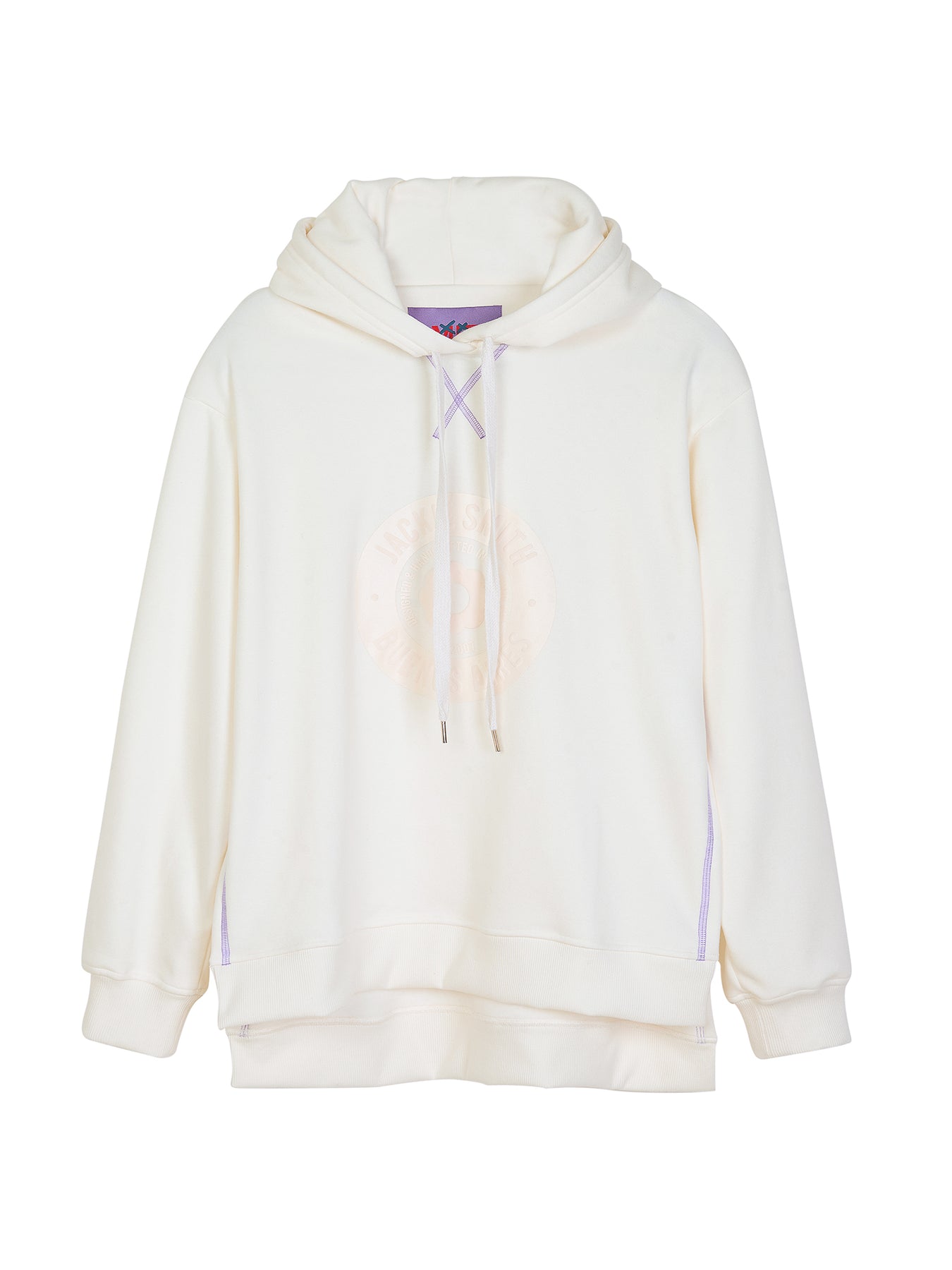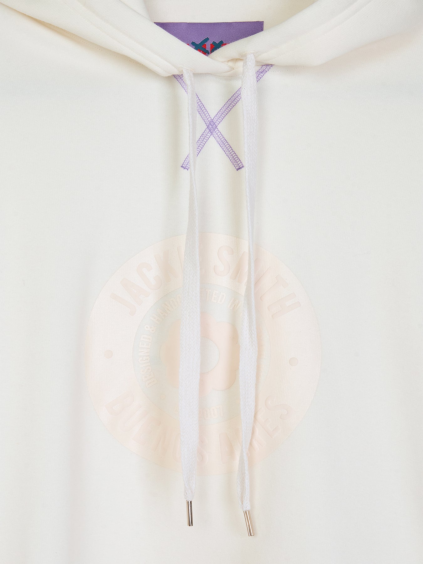 Confeccionado en jersey con un amable interior afelpado, este hoodie de calce holgado y relajado resulta en un look urbano y extremadamente cómodo. Su estampa frontal con relieve aporta textura y un toque gráfico irresistible.