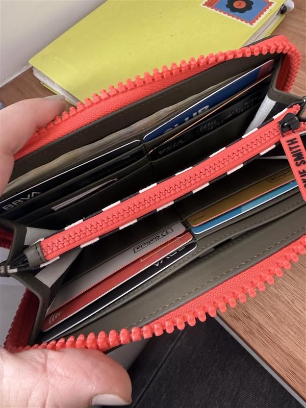 Es muy lindo el diseño, podes colocar muchas tarjetas. puntos a mejora. Donde colocas los billetes no es cómodo ni sencillo de utilizar, si los billetes están gastados es complicado colocarlo y que no quede arrugados. No hay un espacio diferenciado para el dni por ejemplo