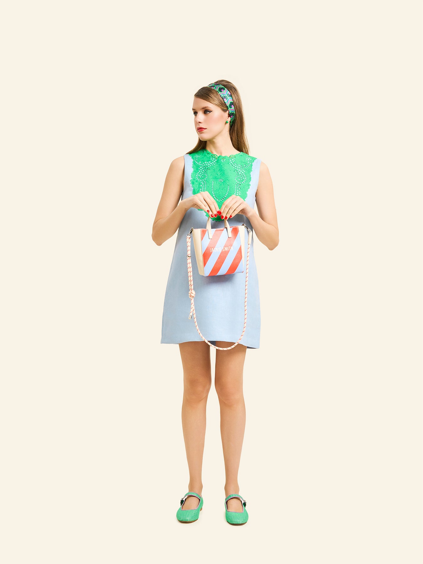 Inspirada en las escenas urbanas y nuestra conexión con el diseño gráfico y el color, nace esta Colección. Confeccionada en PU grabado, esta mini bag presenta un graphic pattern que captura el espíritu lúdico de Jackie. Con el espacio necesario para que puedas llevar cómodamente tu teléfono celular, tarjetas y llaves. Cierra con broche imán e incluye una strap regulable confeccionada a partir de un hermoso cordón bitono que te permite llevarla al hombro o como crossbody. Power Up! Petite Corita is here to stay!