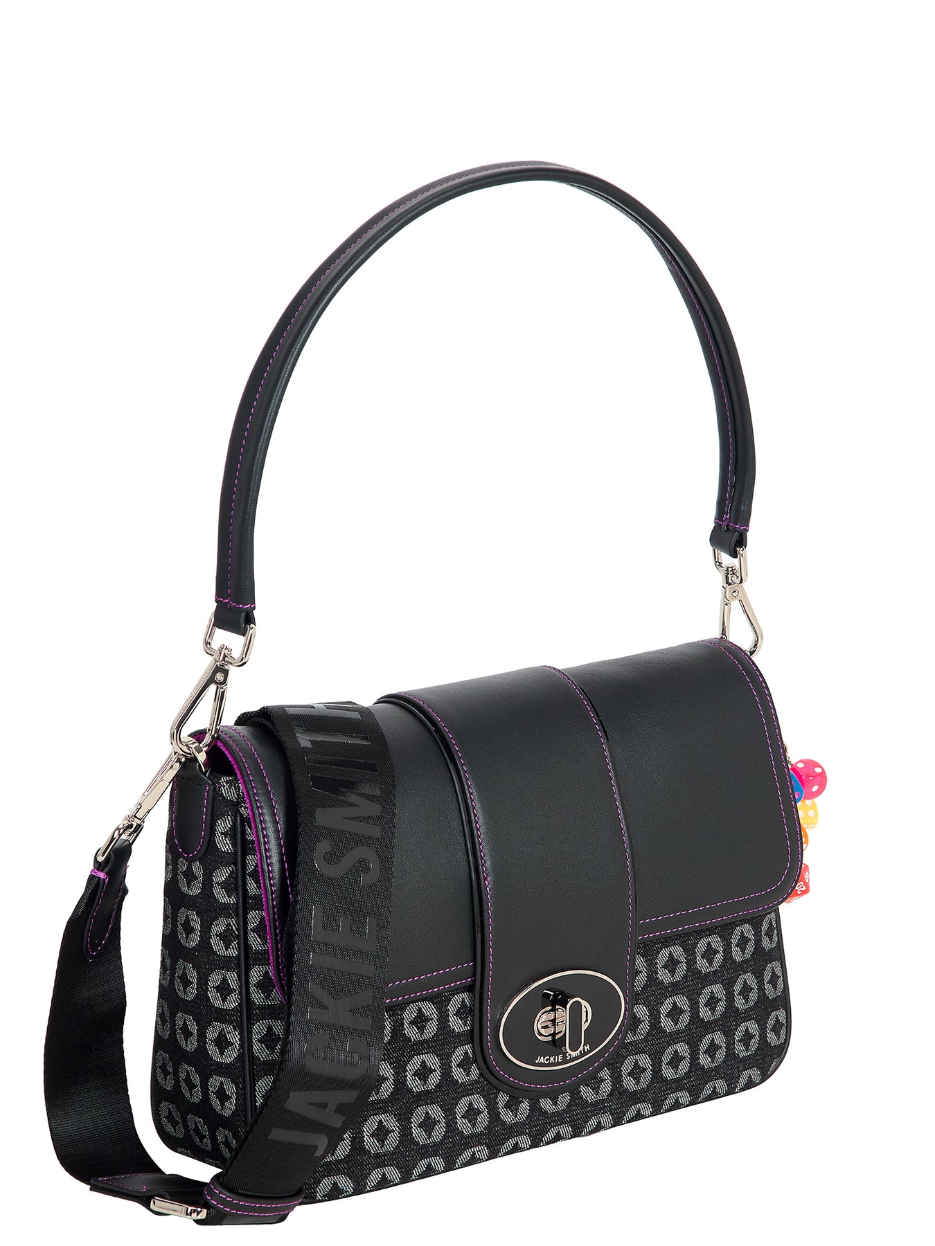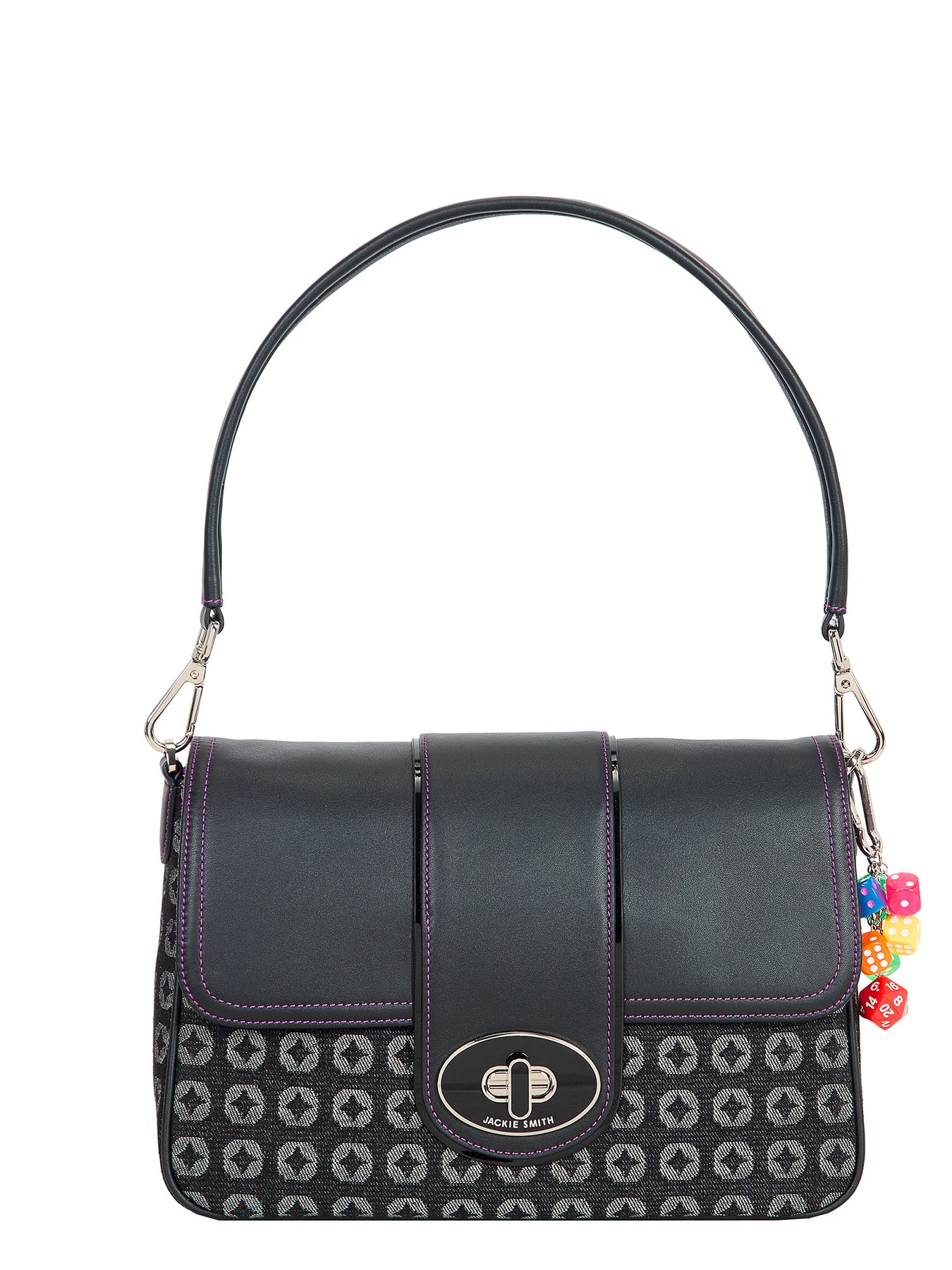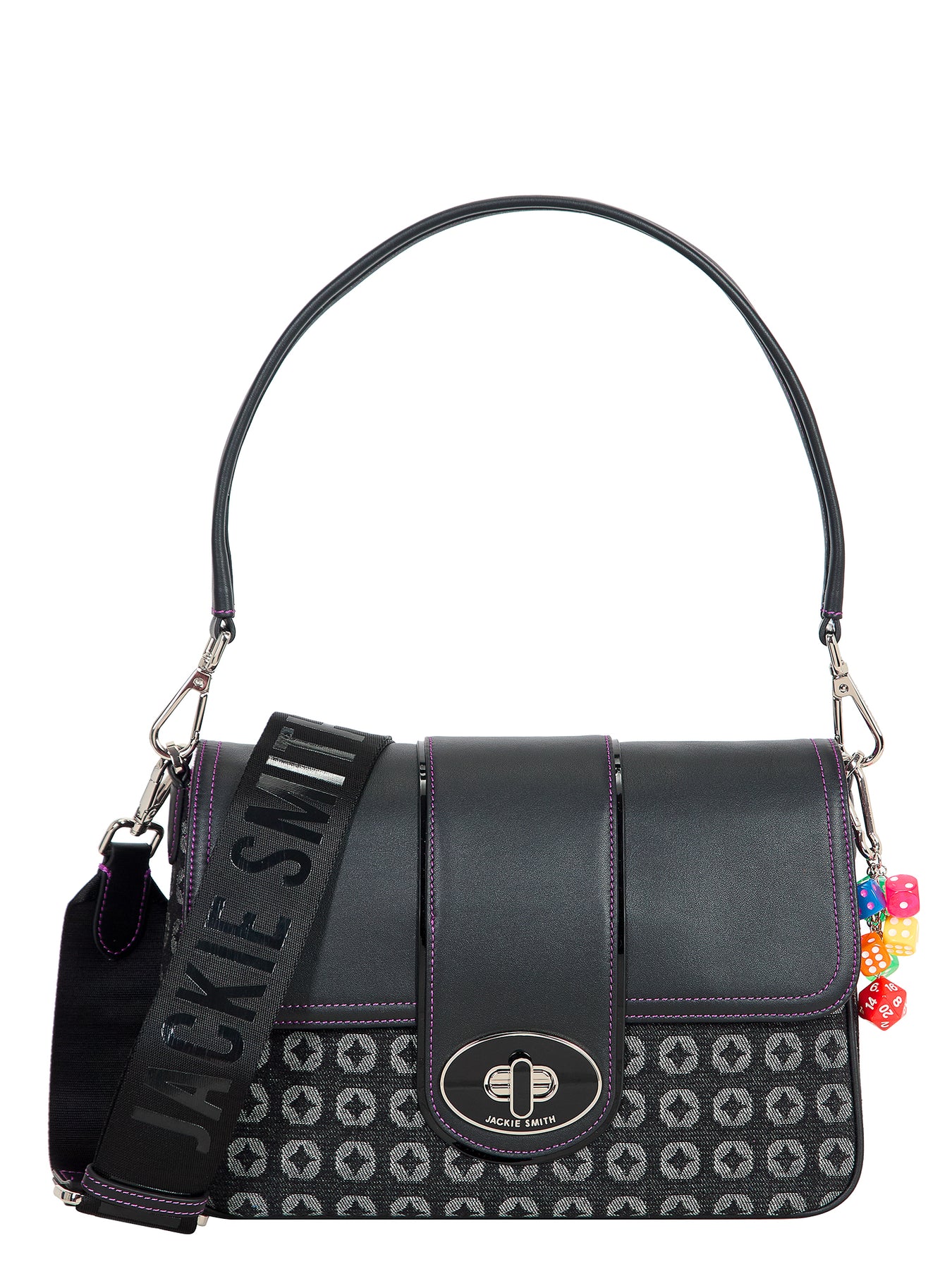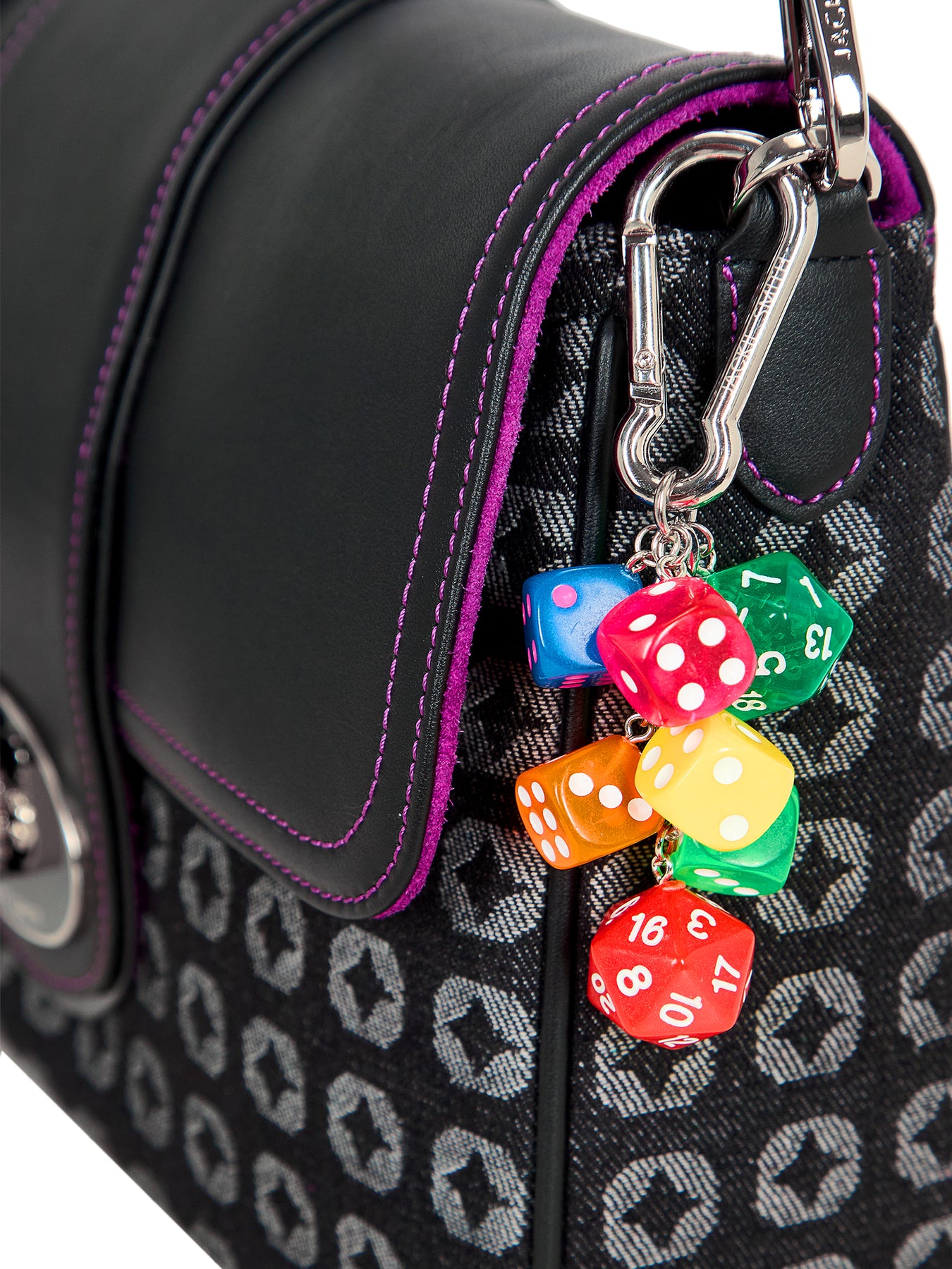 Femenina, elegante y dueña de una silueta atemporal que condensa carácter y frescura. Maxi Lupe Monogram Edition equilibra líneas limpias y espíritu gráfico, realzado por detalles en suave cuero napa y herrajes bañados en níquel que acentúan su impronta contemporánea. Su strap a tono introduce un aire sporty-chic, mientras que el charm de dados de colores, pequeño y vibrante, se convierte en el guiño secreto que transforma la pieza en un objeto que se mueve con gracia entre la precisión de la geometría y la ligereza del juego.