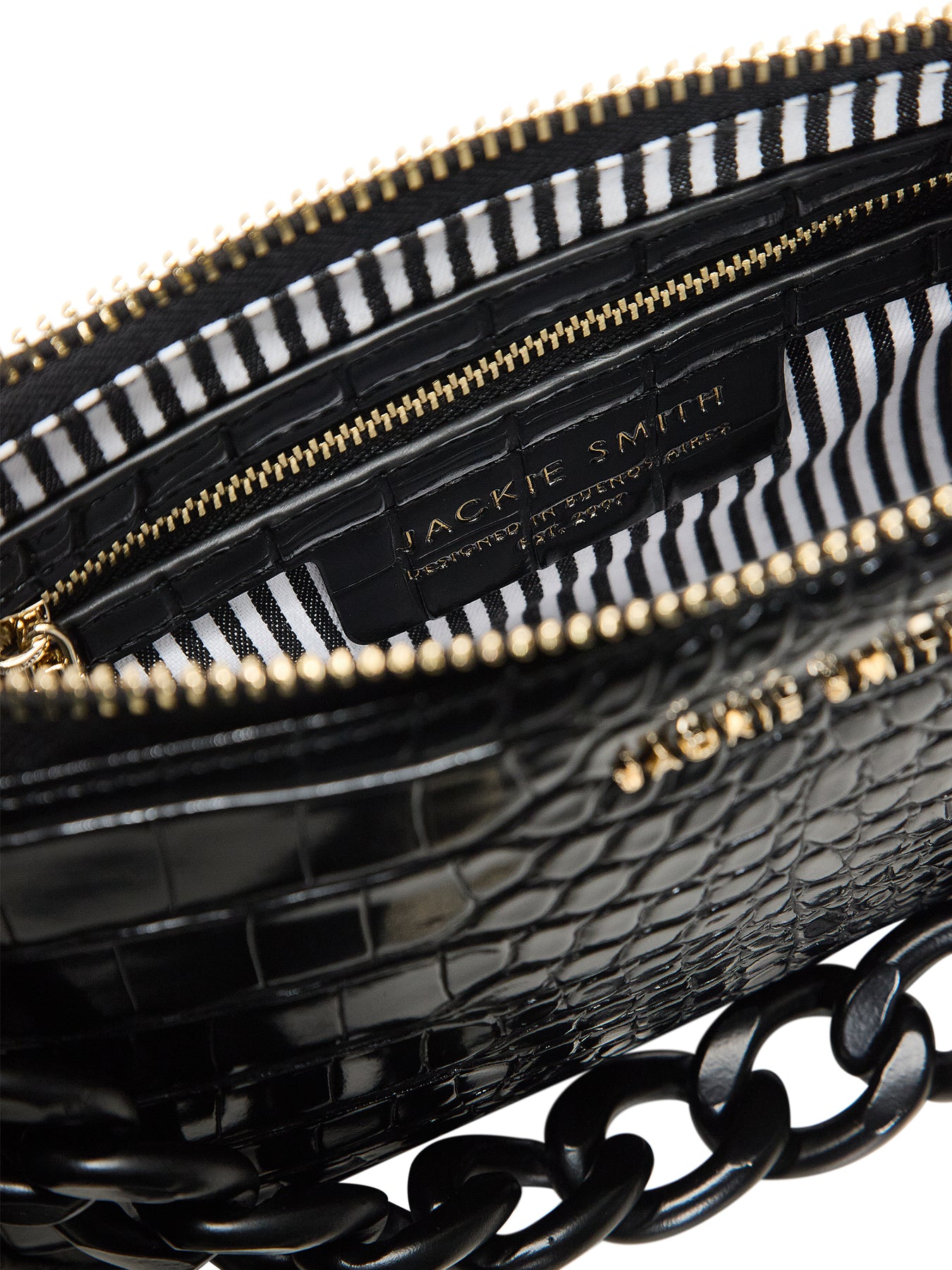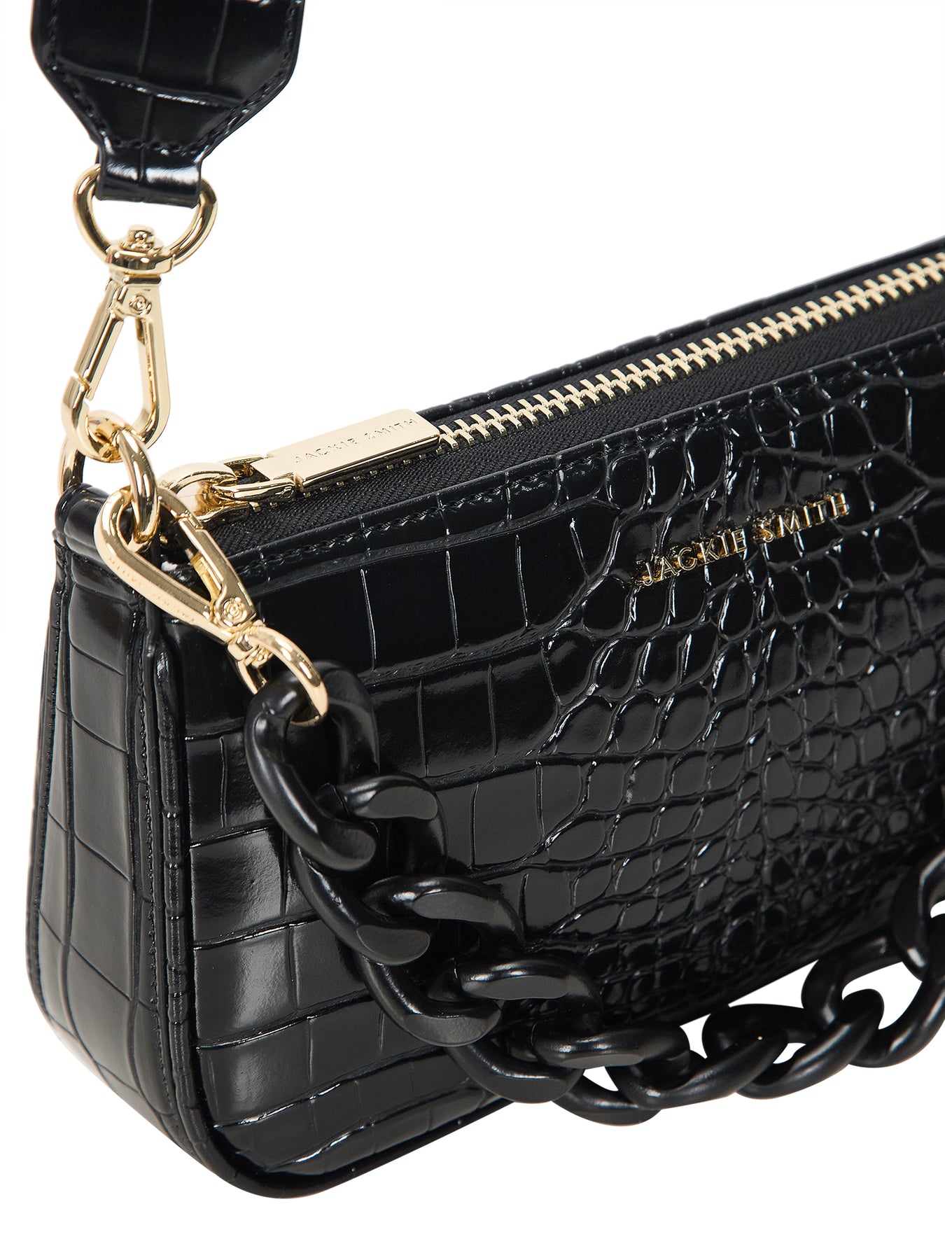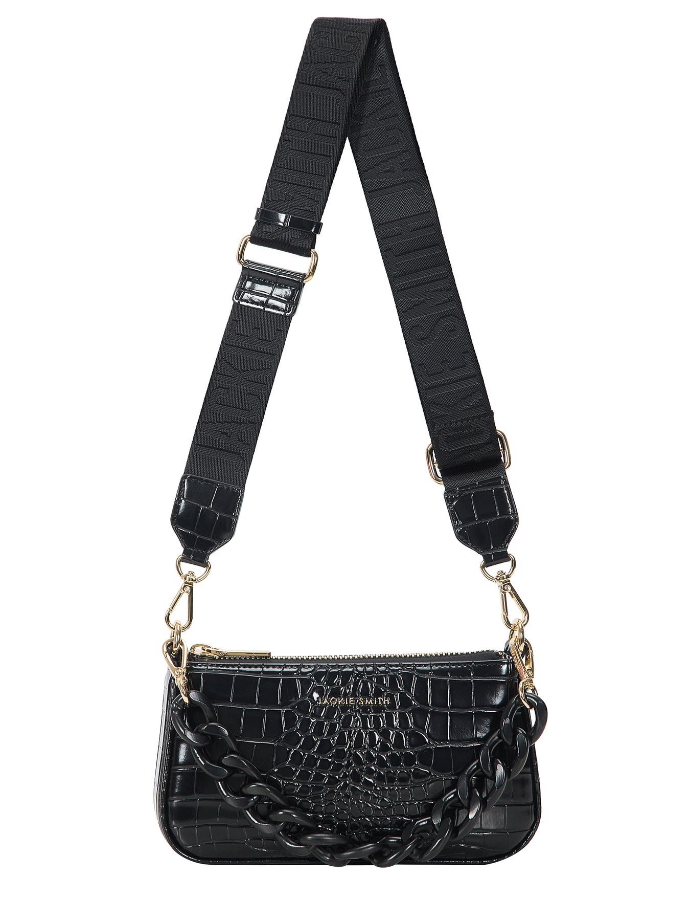 Beyond the crowds and city lights, Wendy shows up. Una mini baguette en glossy PU grabado con efecto crocco. Podés optar por llevarla con su strap regulable (y removible) o dejarte seducir por su cadena bañada en negro mate. Simple e irresistible, de día o de noche, con denim, un cotton dress holgado o tu black outfit favorito. Just forget about the world, we’re young tonight.