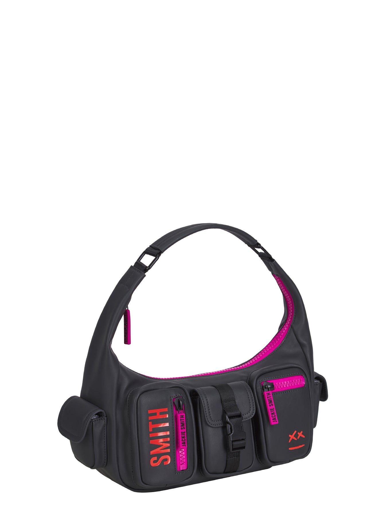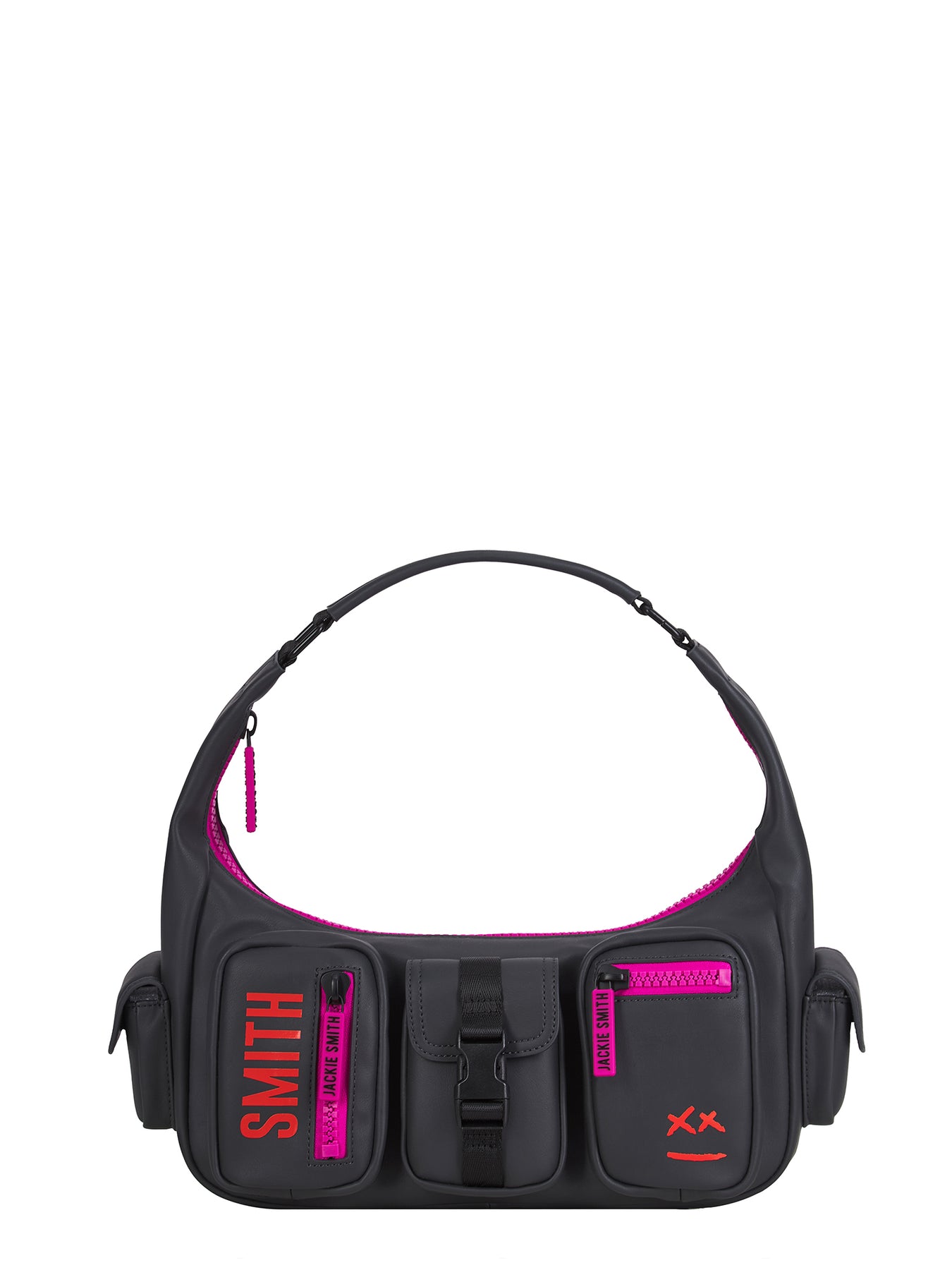 - bolsillo delantero central con ribbon tejida y hebilla plástica en color negro
