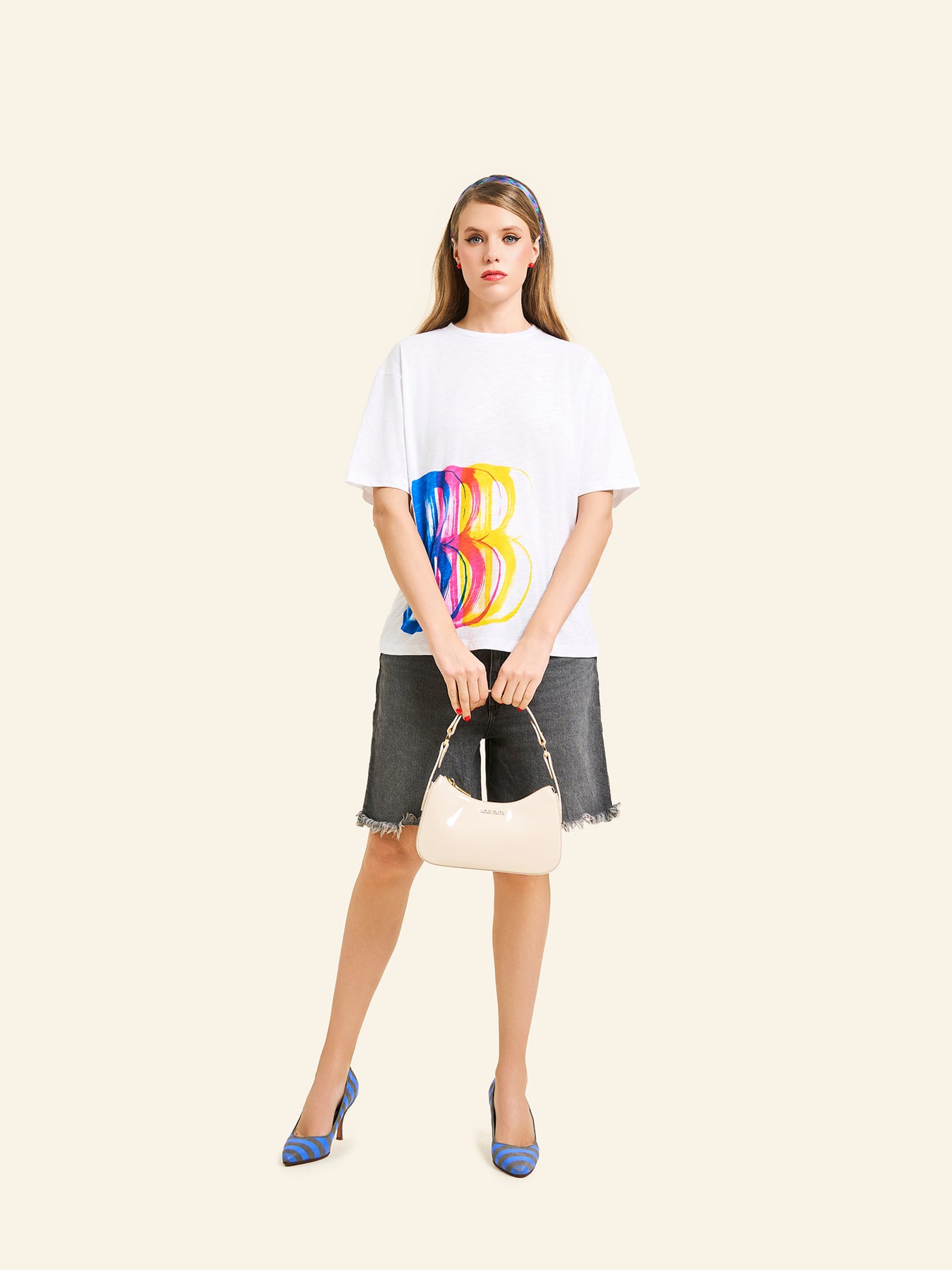 Este mini bag de líneas depuradas y silueta curva combina el acabado pulido del charol con acentos cromáticos que lo elevan. Su manija ancha y estructurada, con nuestras signature stripes estampadas en serigrafía, aporta un contraste visual inesperado que infunde una actitud contemporánea. Compacto aunque expresivo, su diseño fue pensado para acompañarte tanto en salidas nocturnas como en looks diurnos de alto impacto. El interior forrado, el cierre metálico dorado y la estructura firme construyen una pieza que se mueve con soltura entre la función y el gesto.