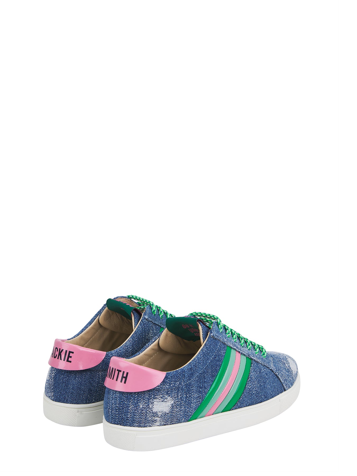 Nacidas del alma de una encantadora pieza de denim italiano y la belleza imperfecta del distress, estas sneakers encarnan una elegancia vivida, real. Sus signature stripes en charol brillante irrumpen como un trazo de color en movimiento, mientras los cordones —pensados como una nota personal— sellan la historia de quien las lleva. Cada par celebra el encanto de lo auténtico: lujo hecho a mano, con el pulso de Buenos Aires.