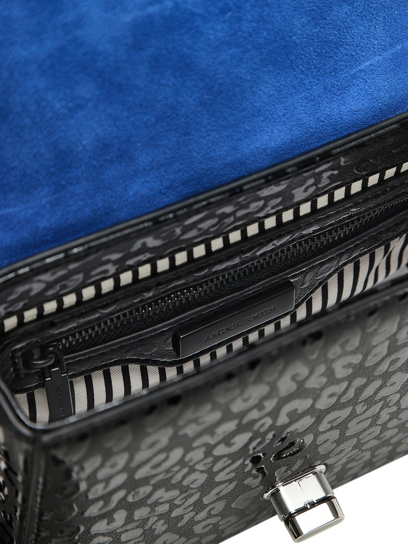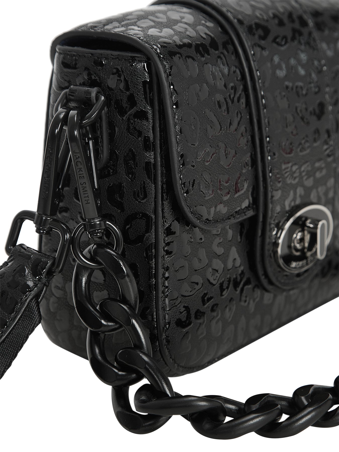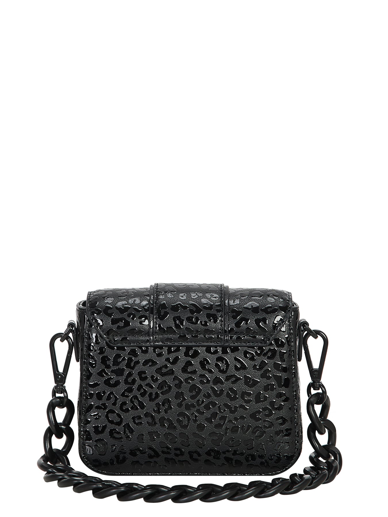 Con una silueta compacta y un espíritu audaz, esta mini bag redefine el encanto de lo esencial. Su cuerpo en cuero grabado negro despliega un juego de brillos sutiles y texturas animalier que evocan la profundidad del lujo silencioso. Su cadena con baño negro mate y el herraje esmaltado conforman un equilibrio preciso entre estructura y sensualidad. Cada detalle refuerza su carácter de pequeña joya urbana. Versátil y sofisticada, acompaña con naturalidad tanto un look relajado como una noche especial, revelando el magnetismo de lo atemporal.
