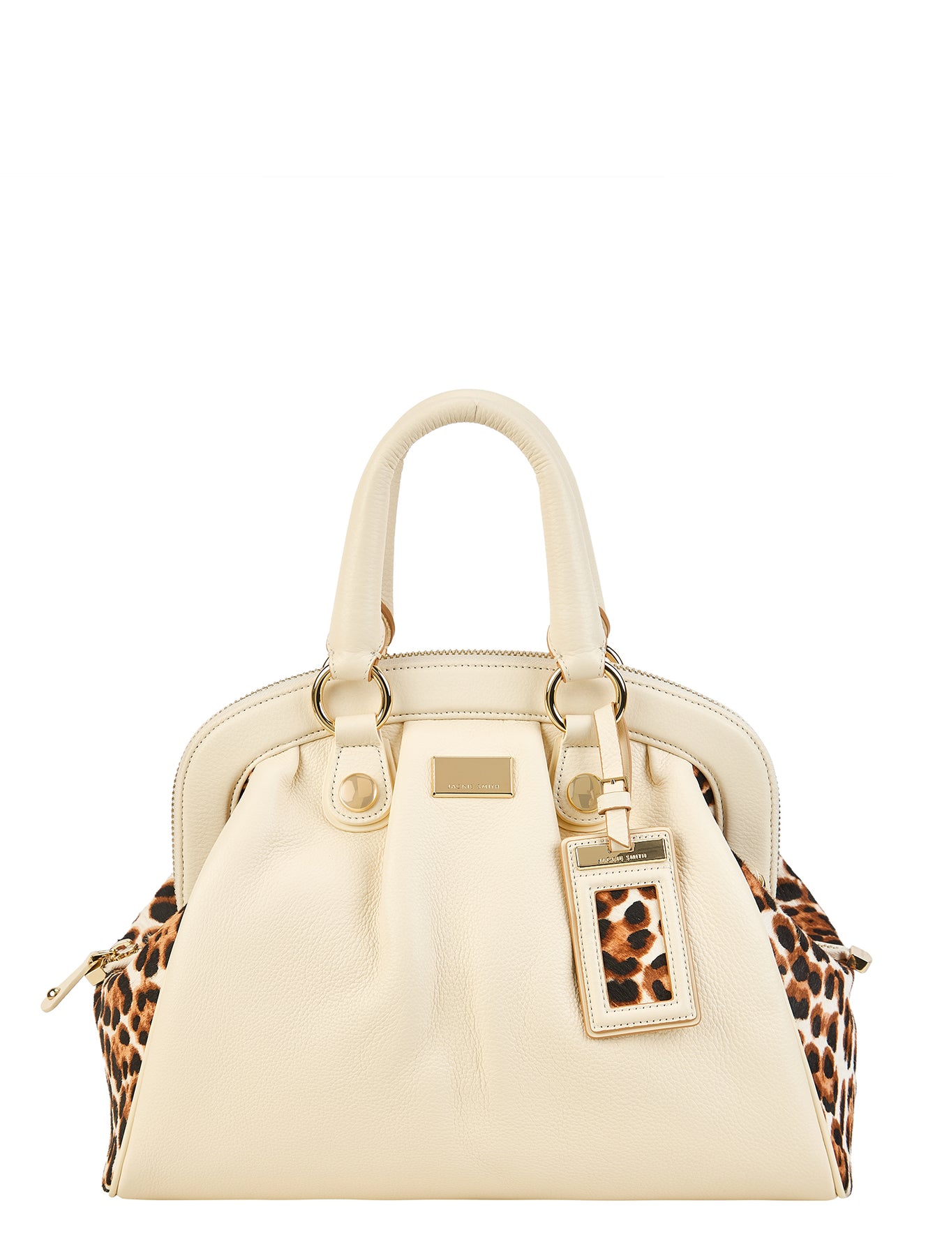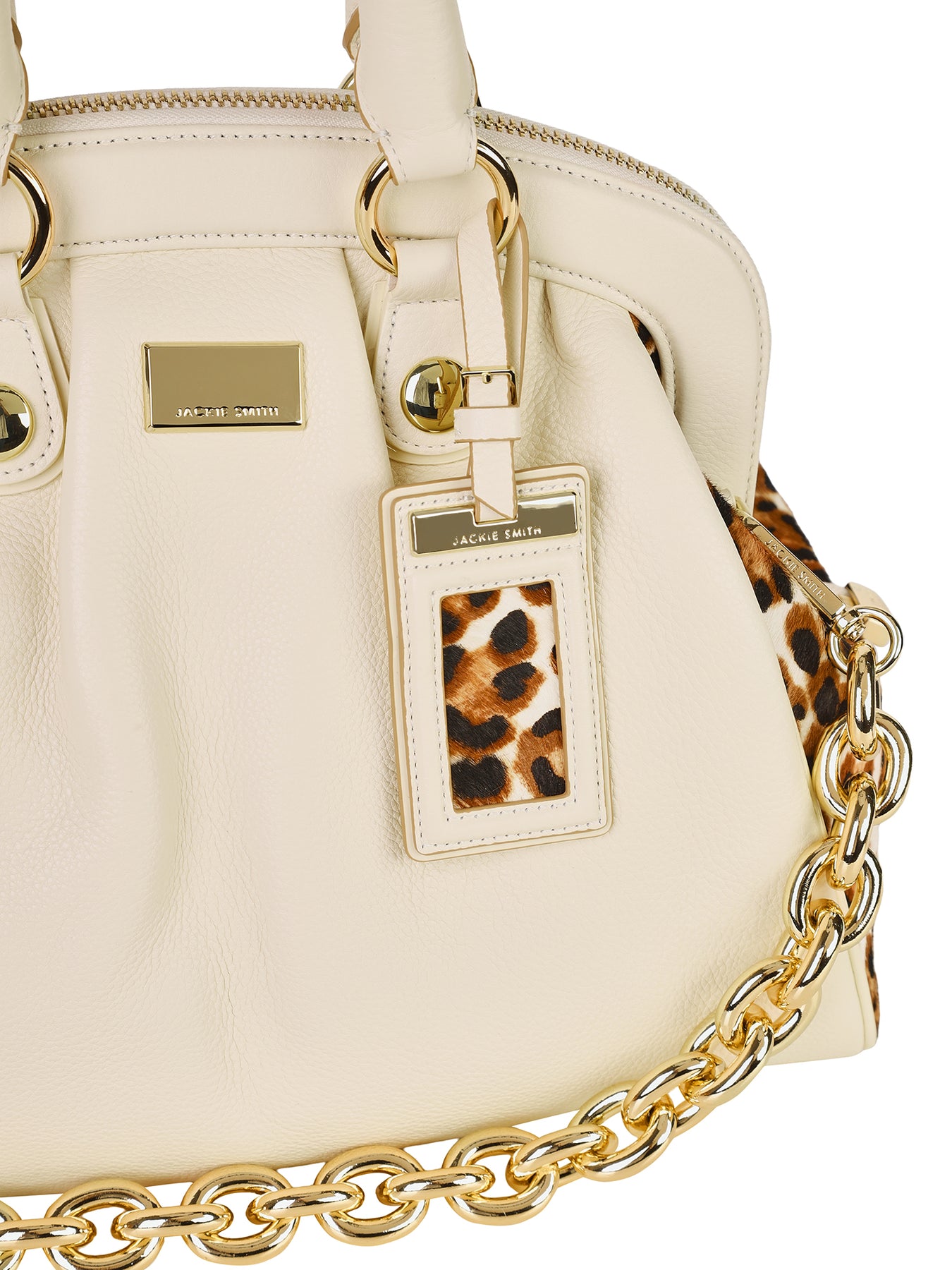 Un bolso que se despliega como un juego de contrastes refinados. El cuero graneado natural se luce en un impactante contrapunto con los fuelles en pelo animal print, los cuales irrumpen como un susurro elegante, cargado de energía atemporal. La cadena dorada, conformada por maxi eslabones, aporta el brillo de una joya y es acompañada por precisos herrajes que subrayan su magnetismo. El ID tag con acento gráfico sella su identidad, mientras en el interior la amplitud se combina con infinitas posibilidades de organización. Una creación concebida para habitar la rutina con elegancia serena y un espíritu lúdico que convierte lo cotidiano en extraordinario.