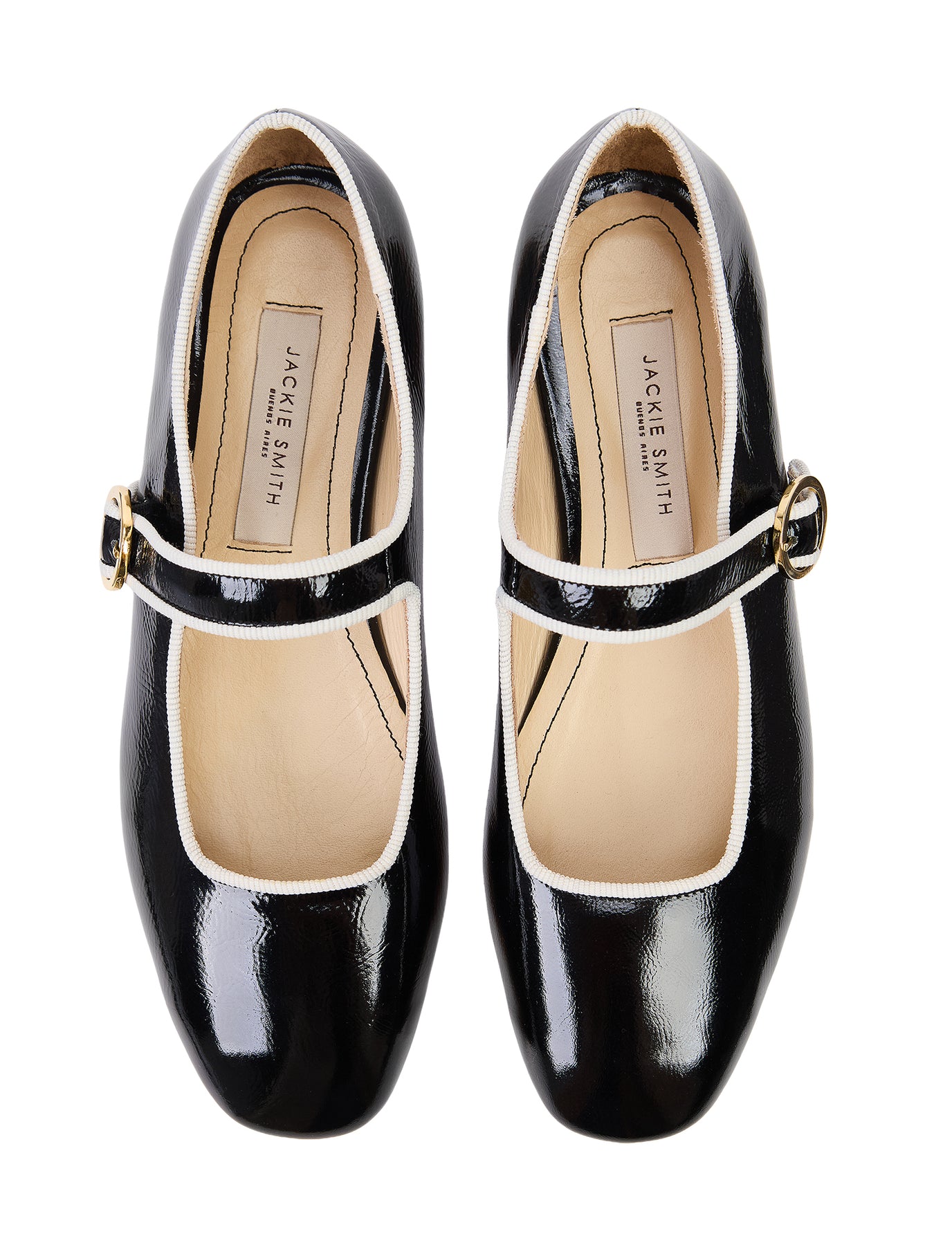 Estas Mary Jane representan el equilibrio perfecto entre tradición y carácter. Manufacturadas en charol, su ribete panna en grosgrain delinea la silueta con precisión gráfica, mientras la hebilla dorada aporta un guiño sutil a la sastrería clásica. Con puntera almendrada y base plana, combina comodidad con una elegancia serena. Una pieza pensada para acompañar con tus días en la oficina y llevarte con gracia a una cita inesperada al final del día. Un clásico reinterpretado, con líneas claras y un espíritu sutilmente provocador.