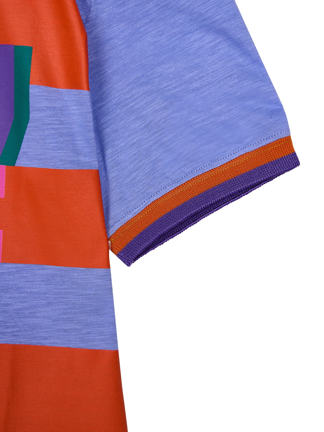 A sporty silhouette reimagined through an urban lens. Crafted in Buenos Aires, each piece belongs to a limited series of screen-printed tees that blend energy and nostalgia with effortless precision. The cropped shape and relaxed fit capture the ease of city life, while the knitted neckline and cuffs — rendered in bold, unexpected color pairings — create a playful contrast that feels both graphic and timeless.