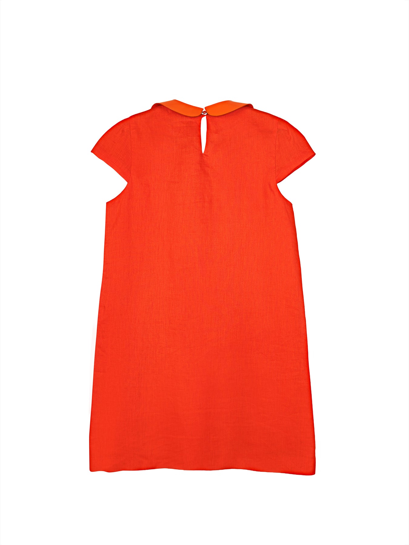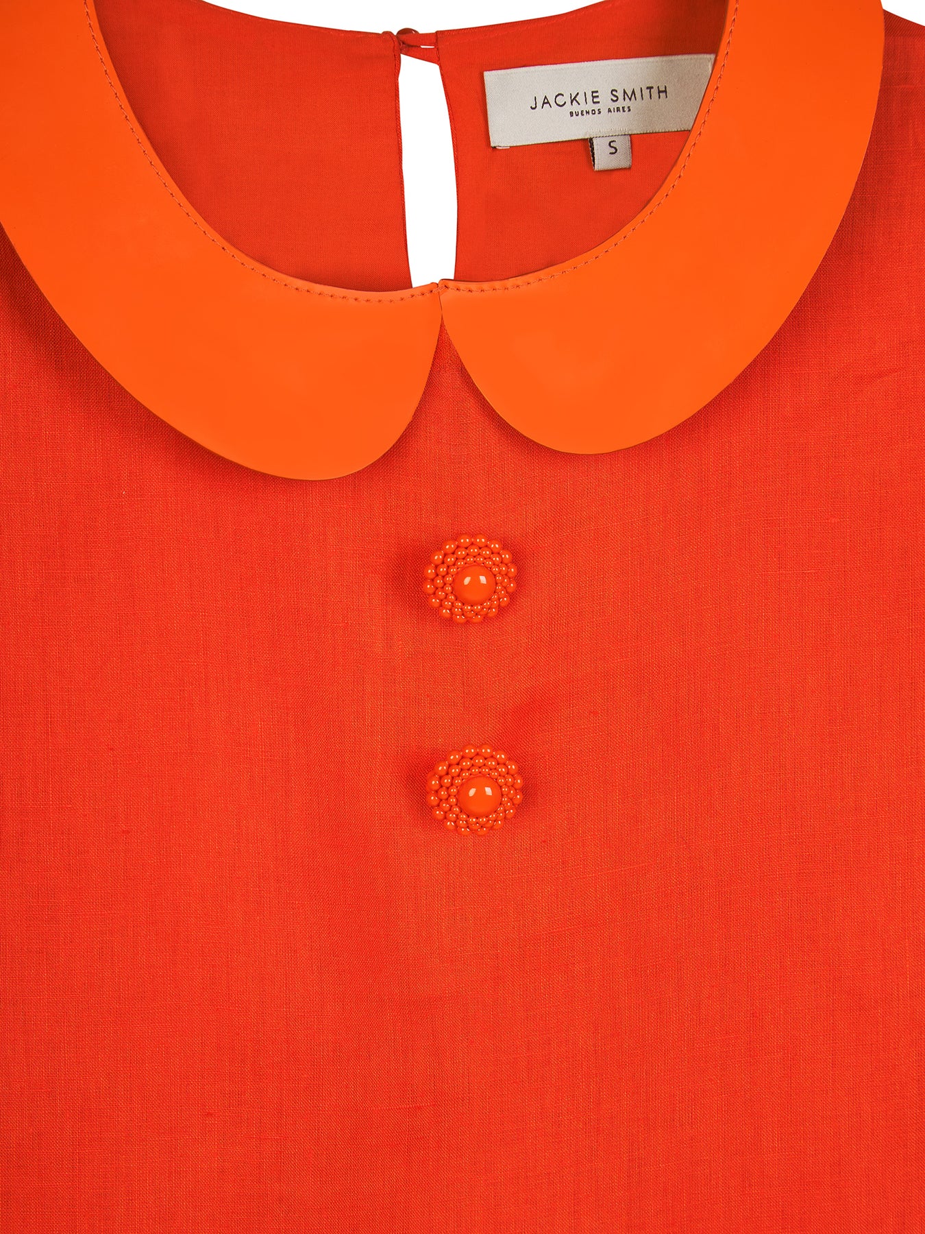 Confeccionado en lino, con una delicada forreria en voile de algodón, este vestidito combina feminidad y carácter en una versión contemporánea del encanto artesanal. Su cuello desmontable en charol introduce un contraste inesperado, entre lo clásico y lo audaz, mientras las terminaciones a mano revelan la delicadeza del oficio. Una pieza que equilibra frescura y sofisticación con un gesto sutilmente irreverente.