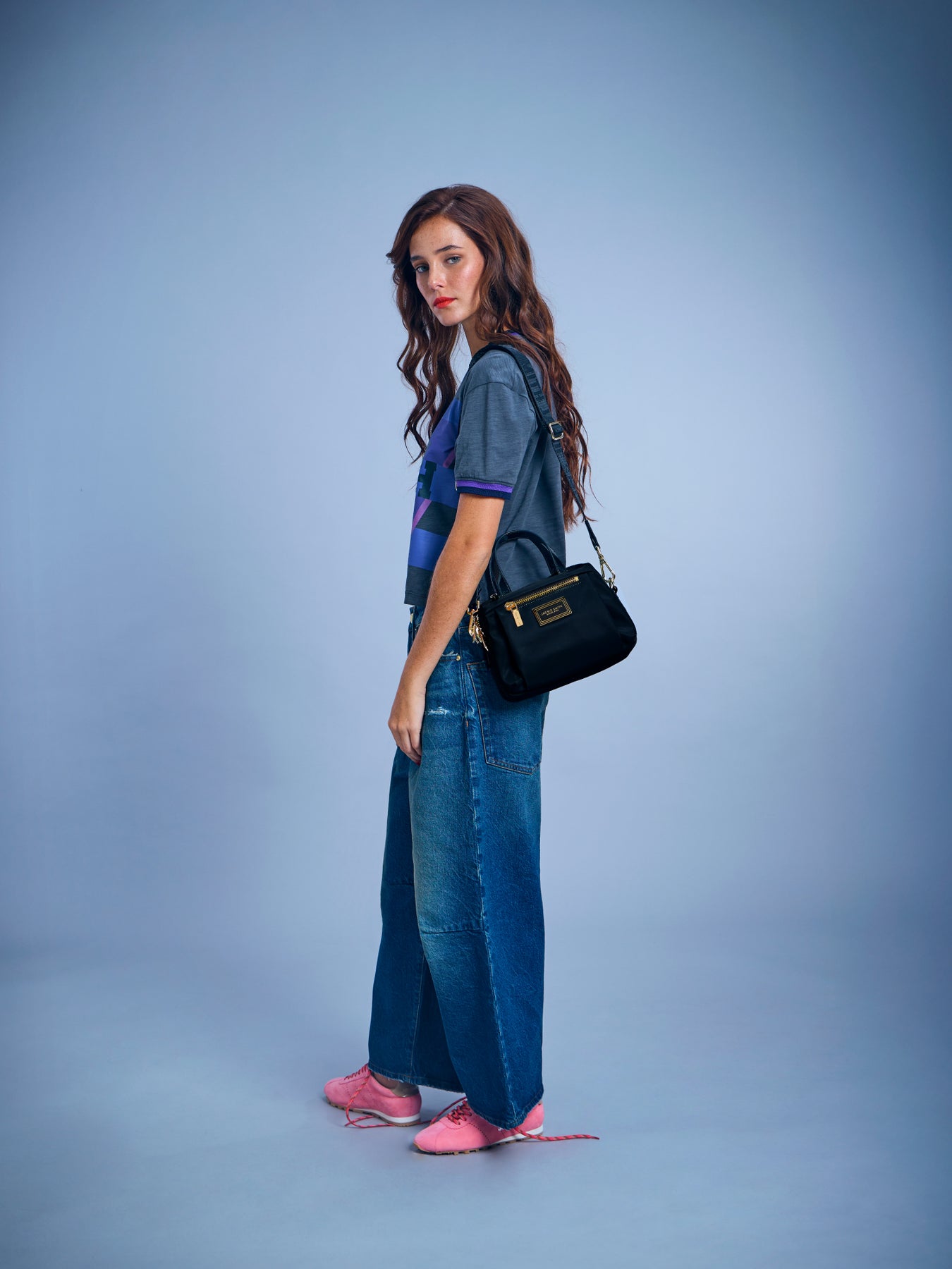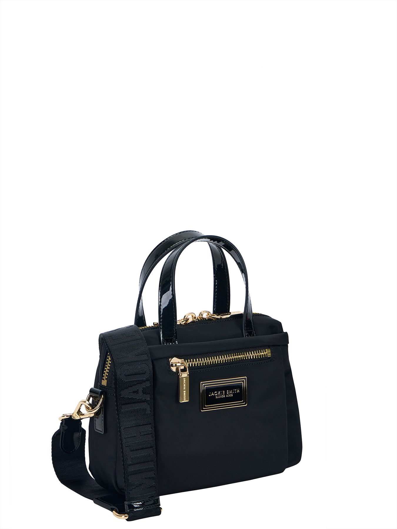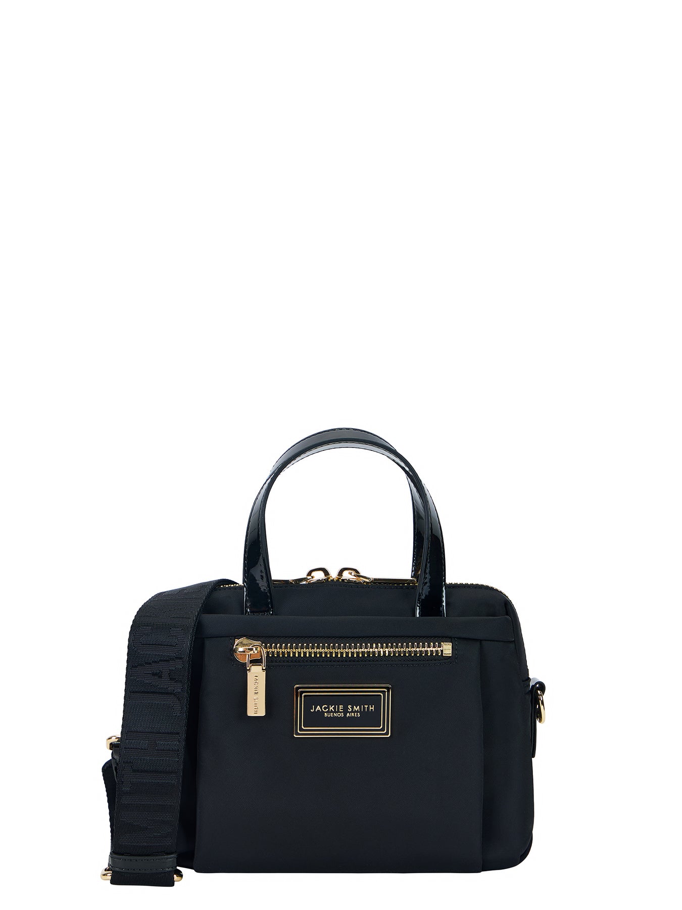Crafted from durable nylon with glossy PU accents and gold-plated hardware, Muse Mini Bag balances charm and structure in a compact, curved silhouette. A zippered front pocket adds practicality without compromising elegance, while the adjustable strap allows for a customized fit—wear it crossbody for ease, or switch to the short top handles for a more refined gesture. It’s the kind of piece that moves effortlessly between a casual pace and a composed presence—just like you do.