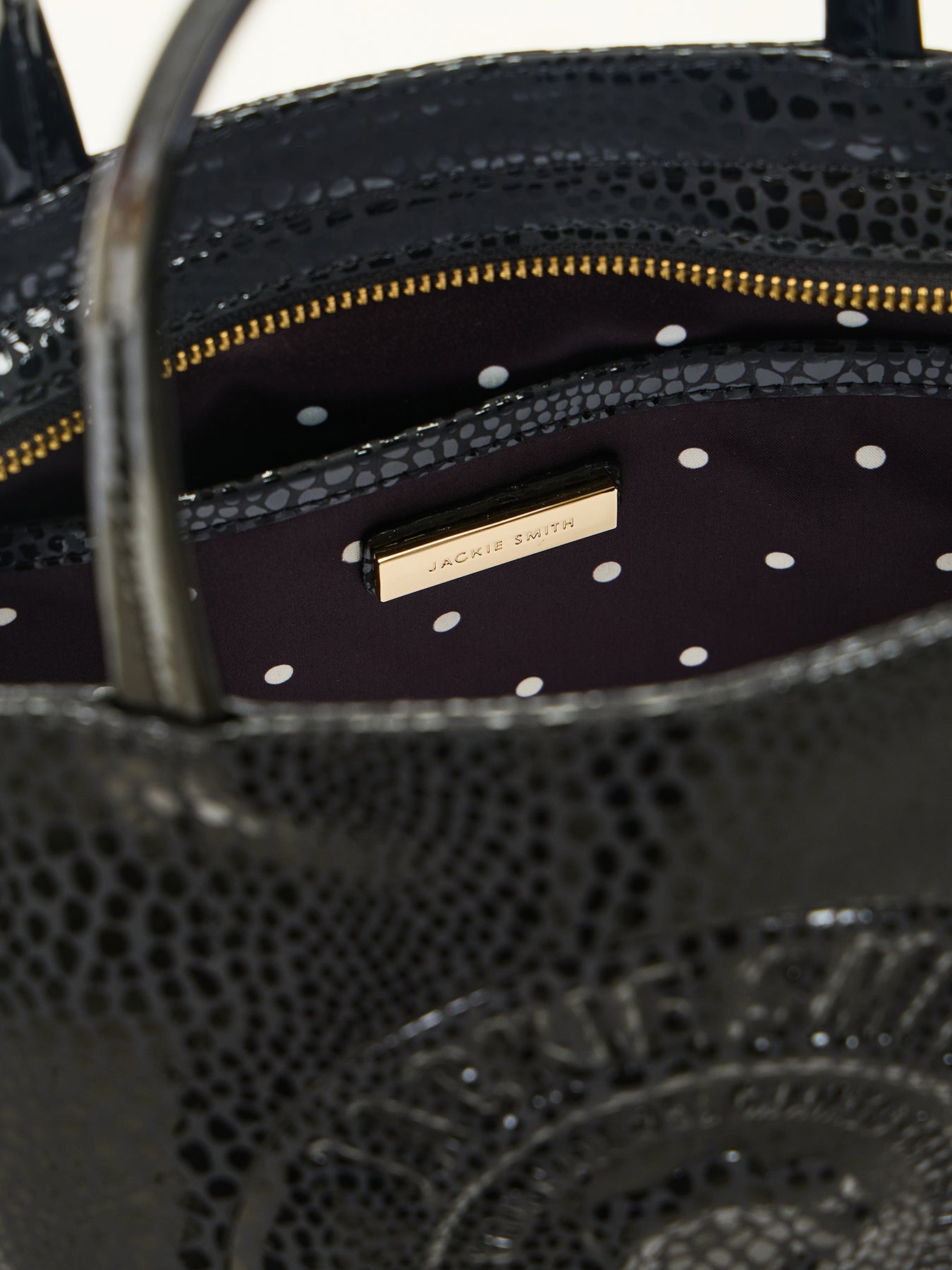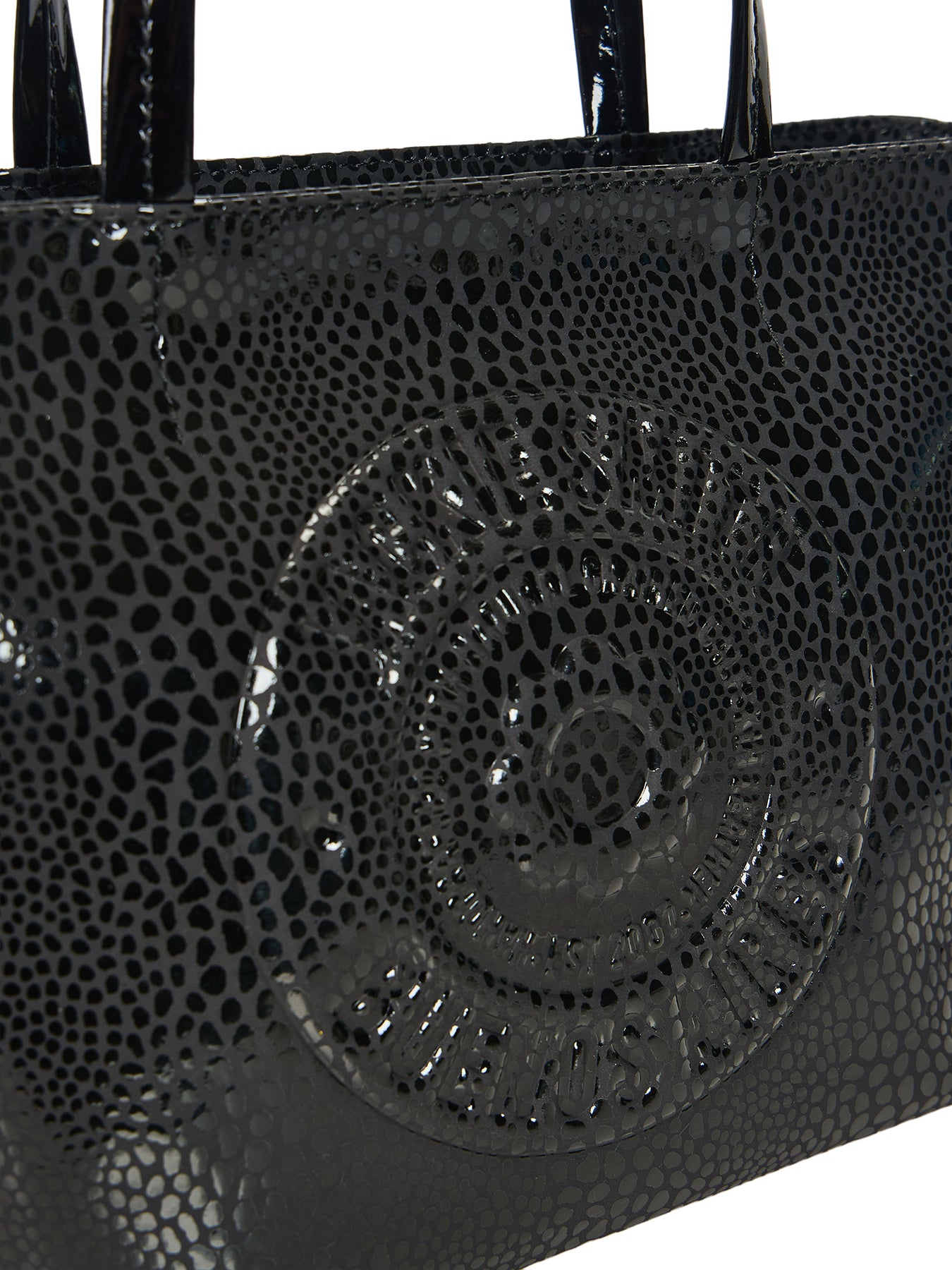 - embossed sparkle snake leather combined with patent leather