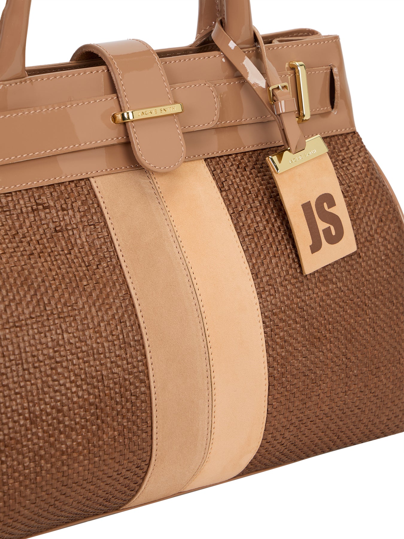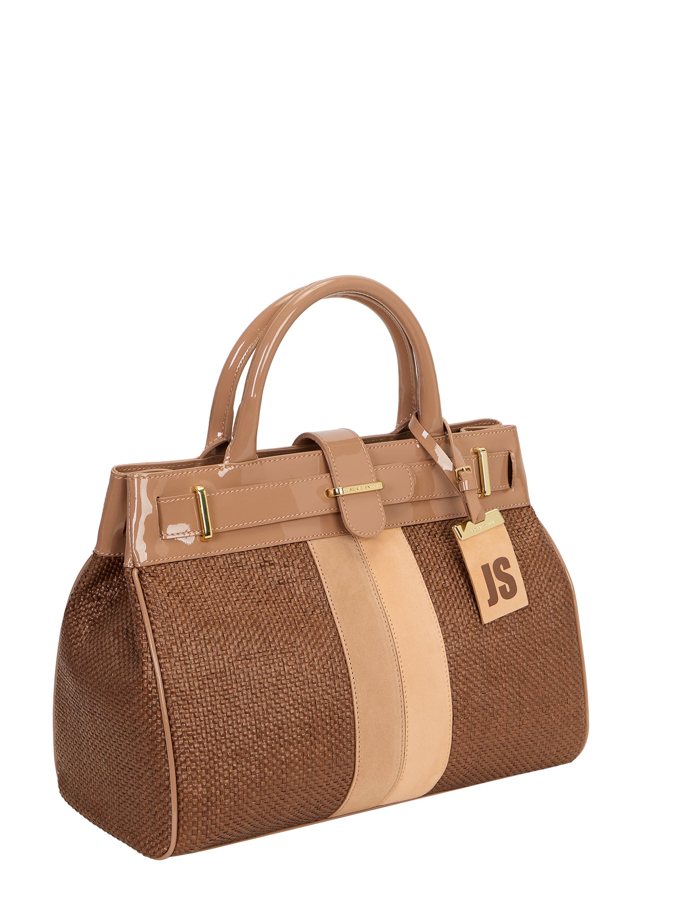 • italian raffia effect fabric combined with italian patent leather and italian suede