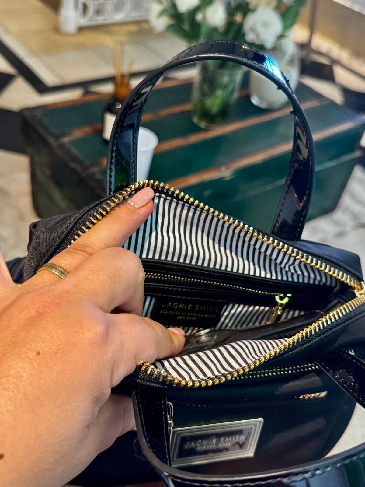 Crafted from durable nylon with glossy PU accents and gold-plated hardware, Muse Mini Bag balances charm and structure in a compact, curved silhouette. A zippered front pocket adds practicality without compromising elegance, while the adjustable strap allows for a customized fit—wear it crossbody for ease, or switch to the short top handles for a more refined gesture. It’s the kind of piece that moves effortlessly between a casual pace and a composed presence—just like you do.