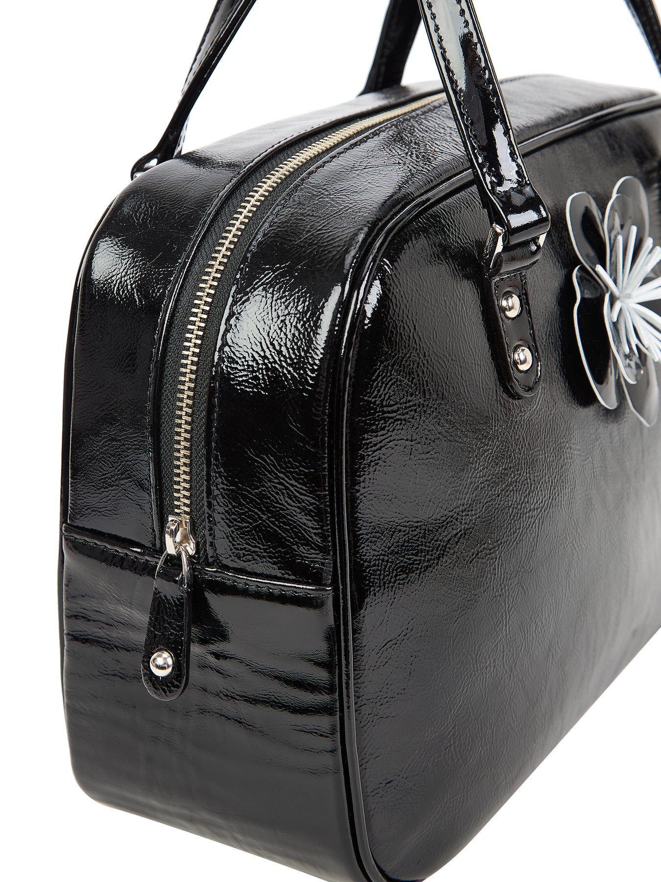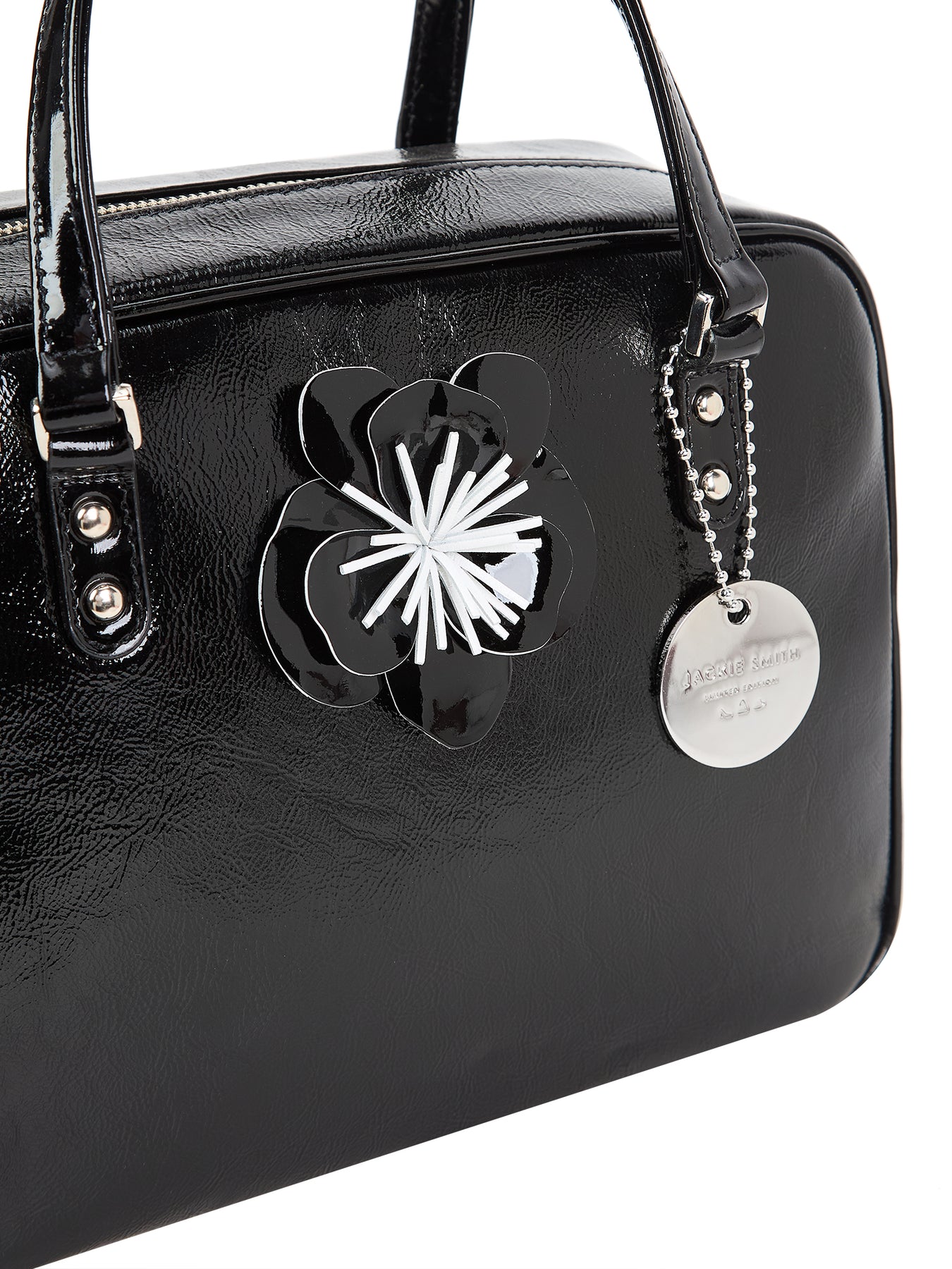 Como un juego de luces sobre la superficie, esta edición de la Classic #10 revela una belleza que se despliega en matices. Confeccionada en charol italiano con efecto arrugado, su silueta midi conserva la estructura precisa y la elegancia atemporal del modelo original, embellecida por un aplique artesanal en charol con forma de flor que introduce un gesto delicado y femenino. En su interior, el satén aporta un brillo suave que acompaña una organización funcional con bolsillo portacelular y portallaves. Sus herrajes bañados en níquel completan esta excepcional pieza de edición limitada con un destello sereno.
